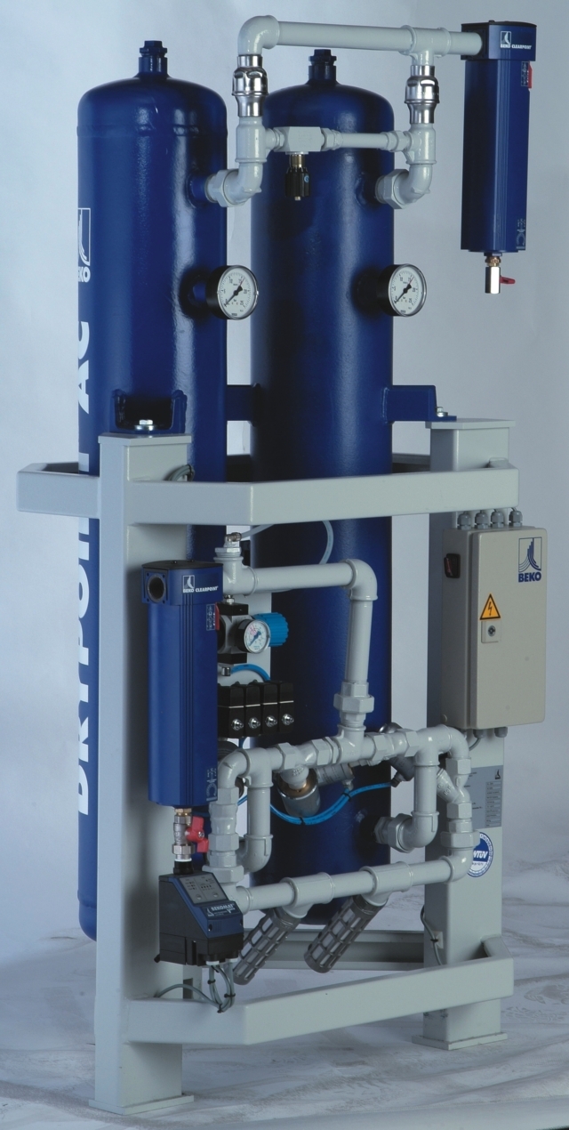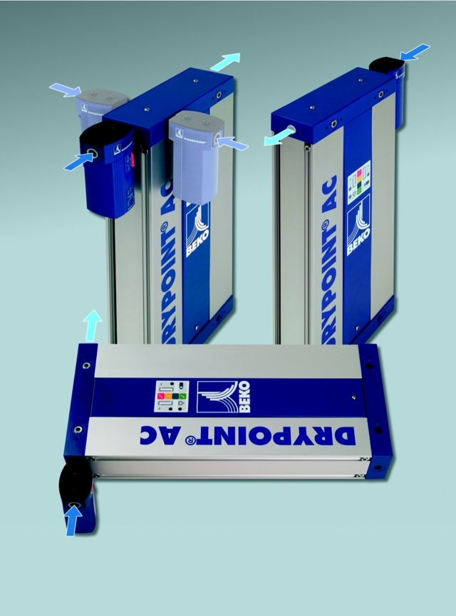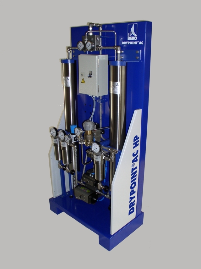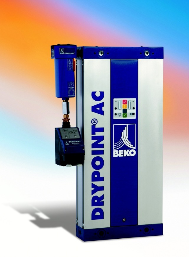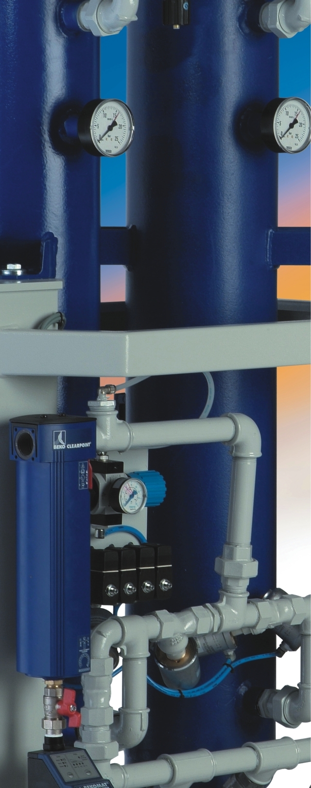 El controlador electrónico contiene un módulo de servicio integrado con indicación automática de los intervalos de mantenimiento y una interfaz para PC para la vigilancia y el diagnóstico remotos. El cambio de agente secante es muy sencillo y rápido, gracias a los cartuchos de recambio. Además, puede realizarse sin desconectar el secador de la red de aire comprimido. El DRYPOINT AC de BEKO TECHNOLOGIES necesita hasta un 75% menos de mantenimiento que los secadores convencionales.