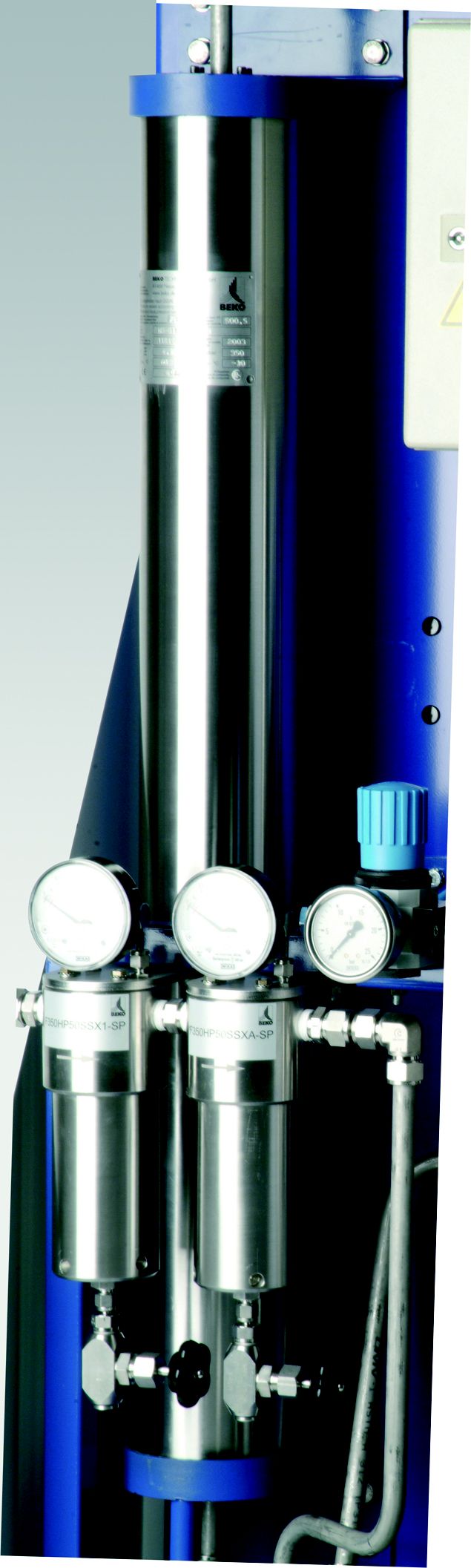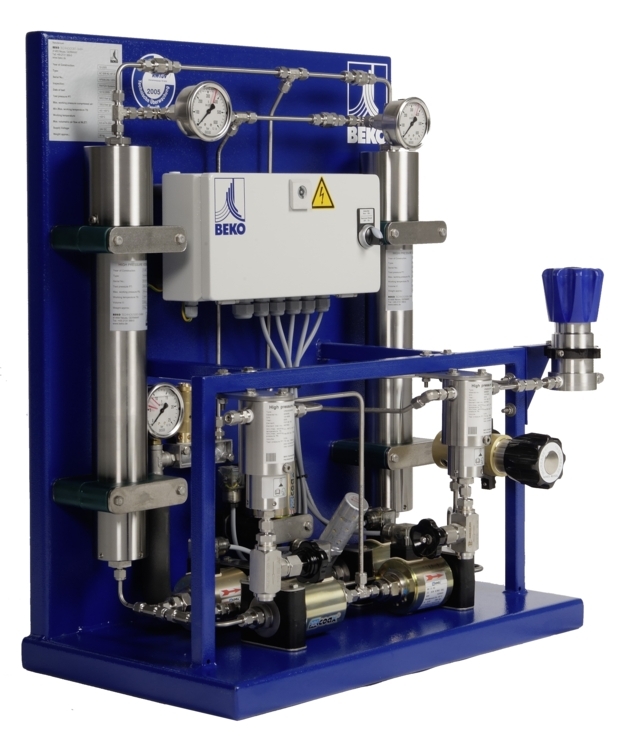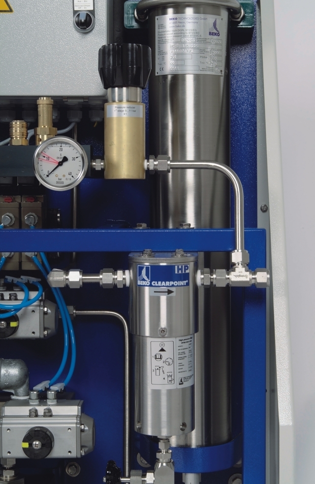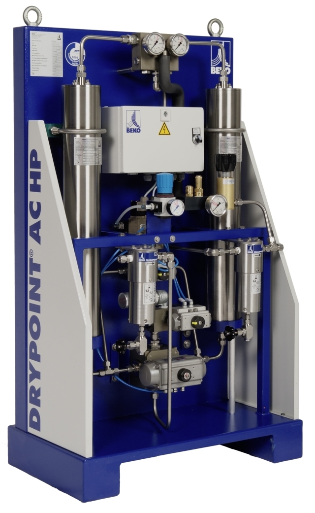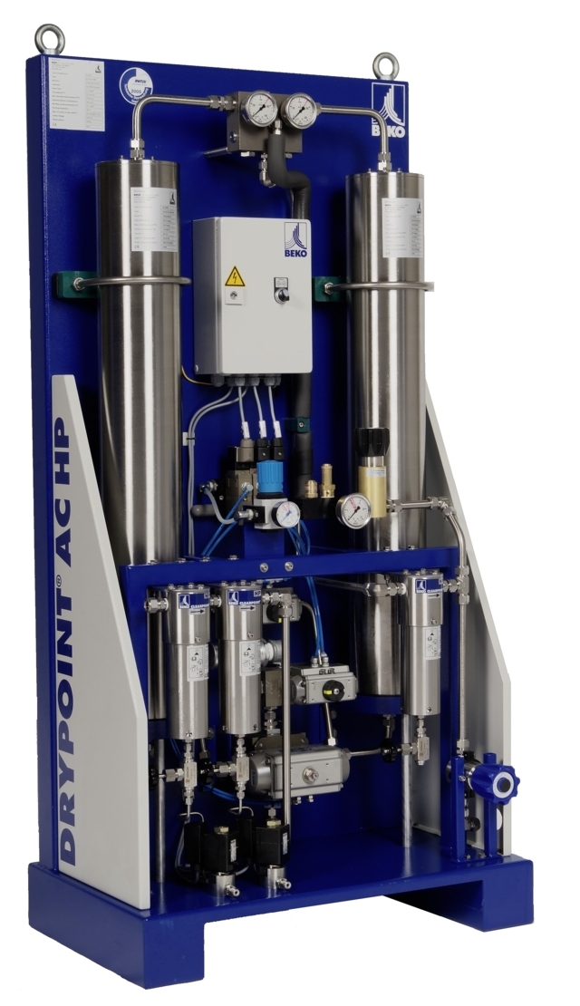 El controlador electrónico contiene un módulo de servicio integrado con indicación automática de los intervalos de mantenimiento y una interfaz para PC para la vigilancia y el diagnóstico remotos. El cambio de agente secante es muy sencillo y rápido, gracias a los cartuchos de recambio. Además, puede realizarse sin desconectar el secador de la red de aire comprimido. El DRYPOINT AC de BEKO TECHNOLOGIES necesita hasta un 75% menos de mantenimiento que los secadores convencionales.